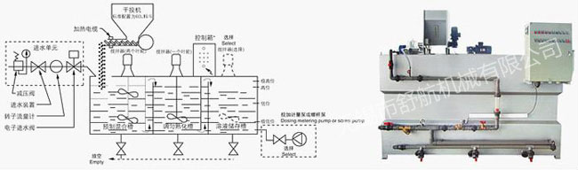 也有分批制備和投加功能的二槽式機(jī)型,或半自動(dòng)制備系統(tǒng),簡(jiǎn)易型溶液藥裝置。